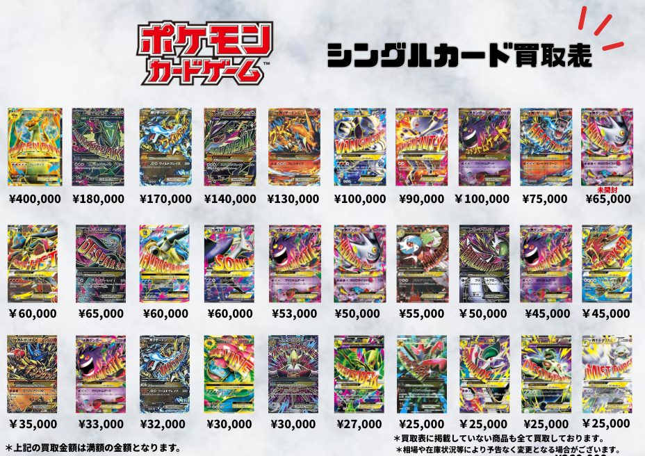 査定項目:各種傷(白かけ、表面擦り傷、打痕等)、裁断、ホロ抜け、折れ、センタリング。インクドは買取不可となります。